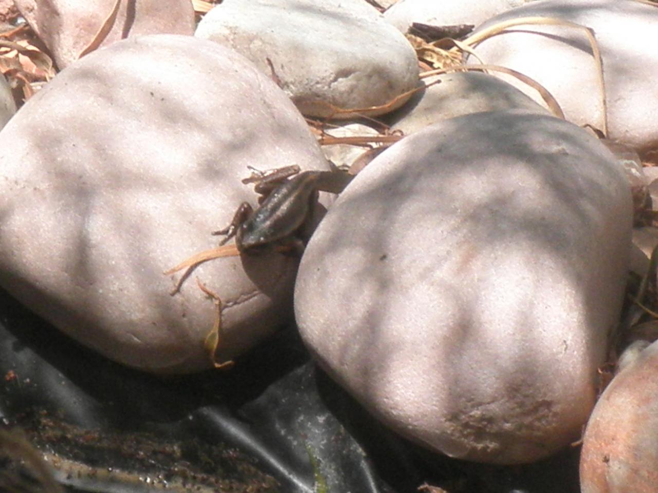 exploring the rocks at the ponds edge