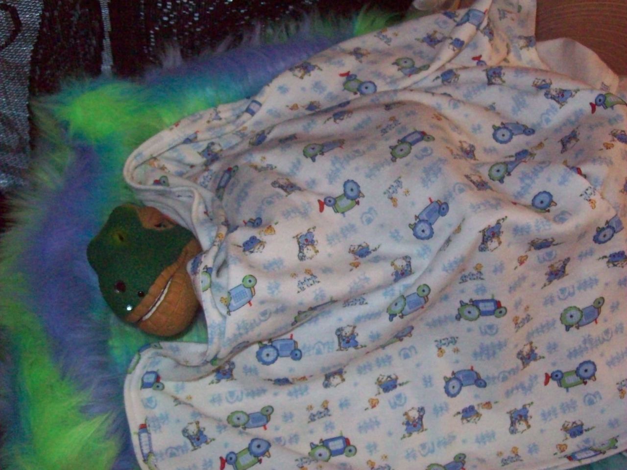 He looks just too cute with his baby blankie