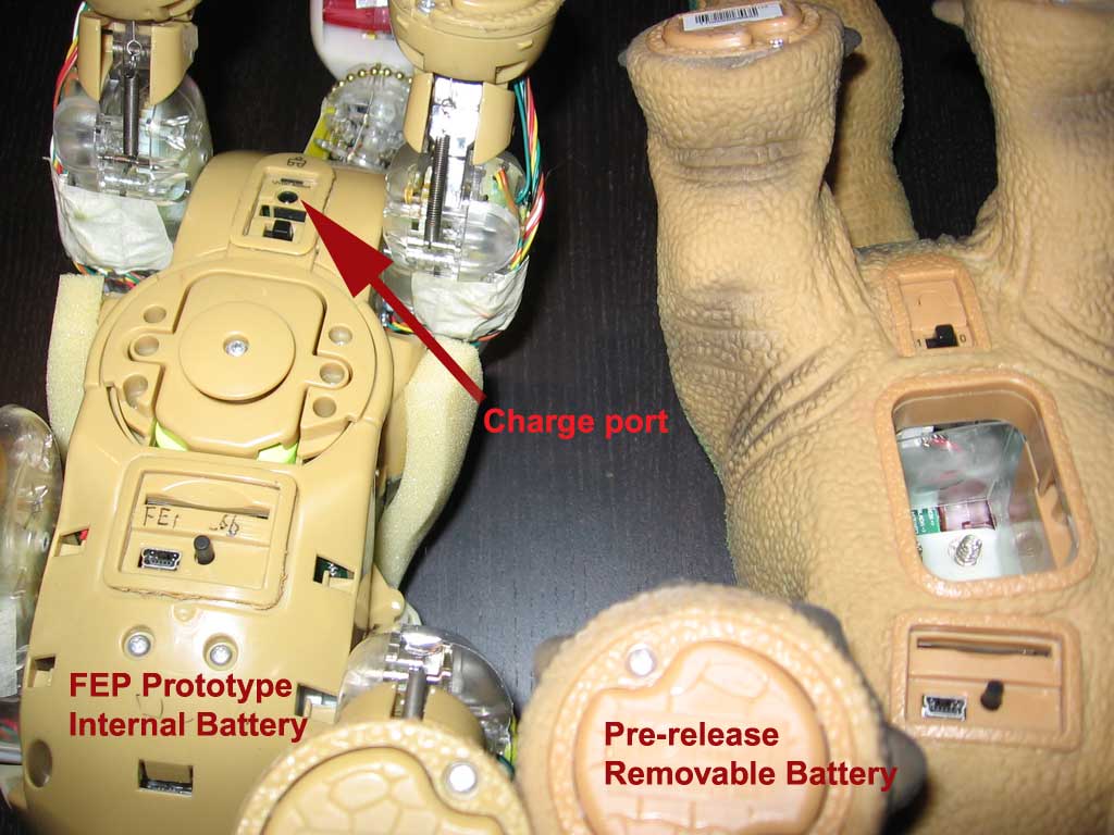Battery concepts - note the one on the left... it required the removal of the disk via screw. The skin then stretched to expose two more screws. Once those were removed, the panel could be removed and the batteries taken out once the connector leads were separated.