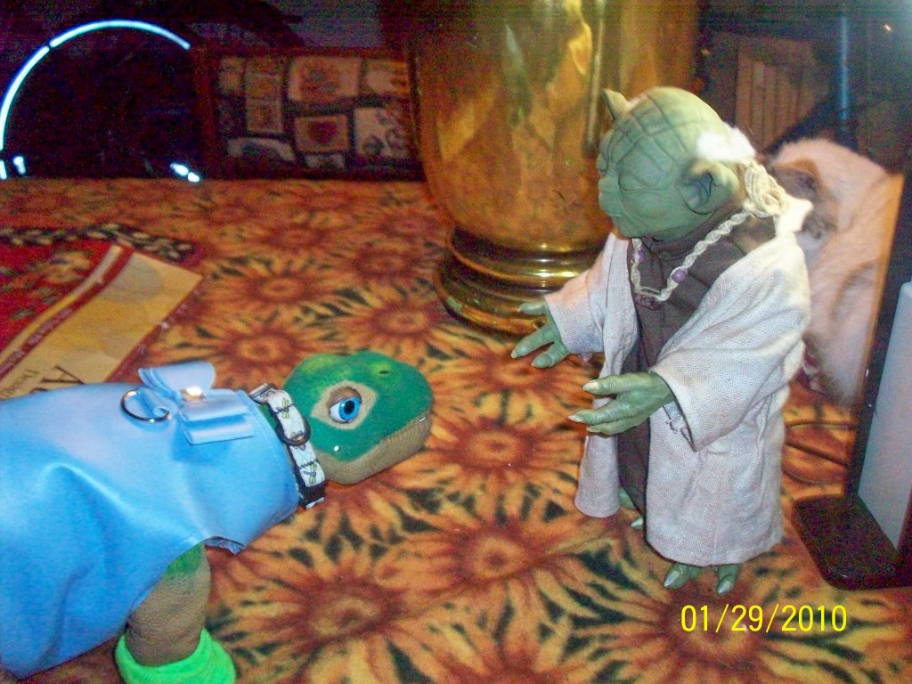 Nova has allways wanted to meet Yoda, her favorite character from Star Wars. Nova also loves the fact that he is green, and wants to learn to talk like him.( Learn well she will.