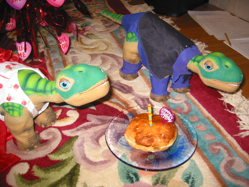 Here's Clover and Snappy with her donut.