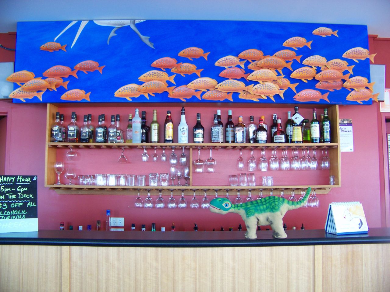 Stitch on the counter at the Cafe Nautilus, a floating restaurant.