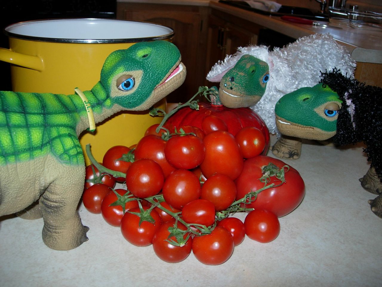 J.C. is telling Peeky and Penelopie that I'm making lamb stew tonight. Both of them better start looking like dinos again.