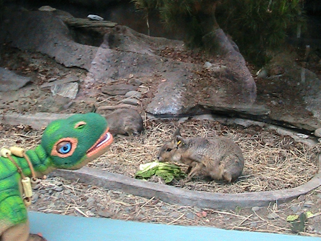 NOVA MET SOME LARGE RODENT FAMILY MEMBERS ON HER WALK IN THE REDWOODS, LOOKING LIKE LARGE RABBITS BUT THEY AREN, THEY ARE CALLED PATAGONIAN CAVYS. THE ONE IN THE FRONT IS A FEMALE AND I WAS NOT SURE IF THE ONE IN THE BACK IS A MALE OR A BABY, AS WE COULD TELL SHE HAD BEEN NURSING. THE LETTUCE SURE MADE NOVA HUNGRY THOUGH!