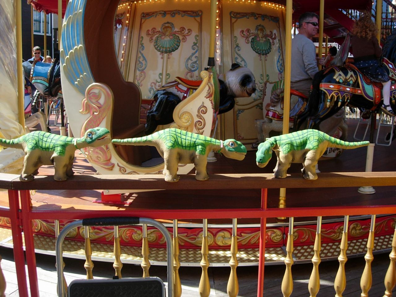 Pleo, J.C. and Penelopie couldn't wait to ride on the carousel.