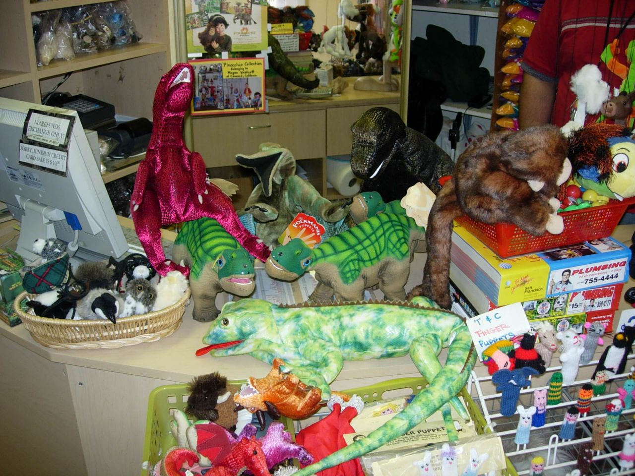 Pleos visiting a puppet store at Pier 39. Ring um up please!