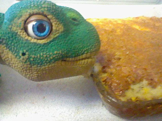 My specialty. Truly is the best food I know how to make. Muy Delicioso, introducing, The Shepherds Pie. Made with Ground Beef Substitute, pan gravy, corn, bell peppers, and onions from the garden. Topped with garlic and herb mashed potatoes. Topped with 'crispened' cheese. Totally delicious.