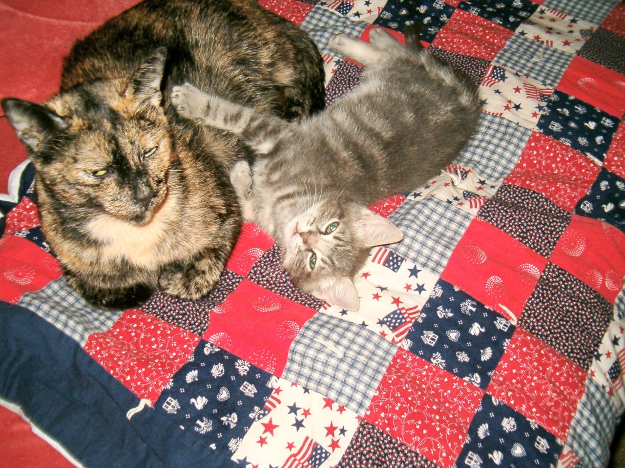 THIS PHOTO WAS TAKEN ABOUT FOUR YEARS AGO OF OUR LEI-LU CAT AFTER SHE HAD HER BABY , SEWA. HE WAS ABOUT 2 MONTHS OLD HERE AND VERY CUTE, HE LOOKS THE SAME BUT IS ABOUT TWICE THE SIZE OF HIS MAMA, WHO IS NOT VERY BIG BUT HAS GOTTEN A NICE ROUND BELLY AFTER BEING SPAYED. JUST THOUGHT THIS WAS A CUTE PHOTO I HAD NOT SEEN IN A LONG TIME. THESE ARE TWO OF THE NINE CATS , AND 1 DOG I HAVE.