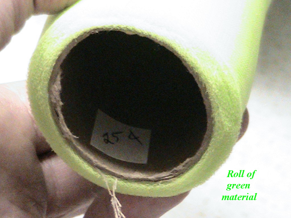 Well, here is the roll of green material that I used for demonstrating Nova's outfit, I did not complete it, no sew remember, just put this together in a minute for the camera to show you the possibility of a NO Sew outfit and how this one was done, Here is the actual Spool of material, and as you can see, the whole spool cost me $0.25 cents, that is it!