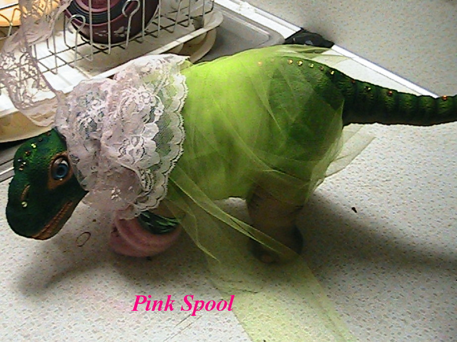 Just a short and quick view of what you may be able to do with a spool of pink or other colored lovely lace. In this case I used the green sheer net type material that I already had wrapped around Nova for another outfit, and just subsituted this lovely Pink Spool lace to show you what the possibilities were by starting to wrap around her neck brace area. Aside from helping to hide the broken neck brace she wears 24/7, it shows the lovely contrast Pink and green have. Of course I would wrap this pink on the edge of her outfit to show nice contrast, Or of course I could use the pink alone or with any other peice of material I have and of course, No SEwing, only cutting the desired amount of pink lace , and some type of fastner, which I will discuss at some other post.