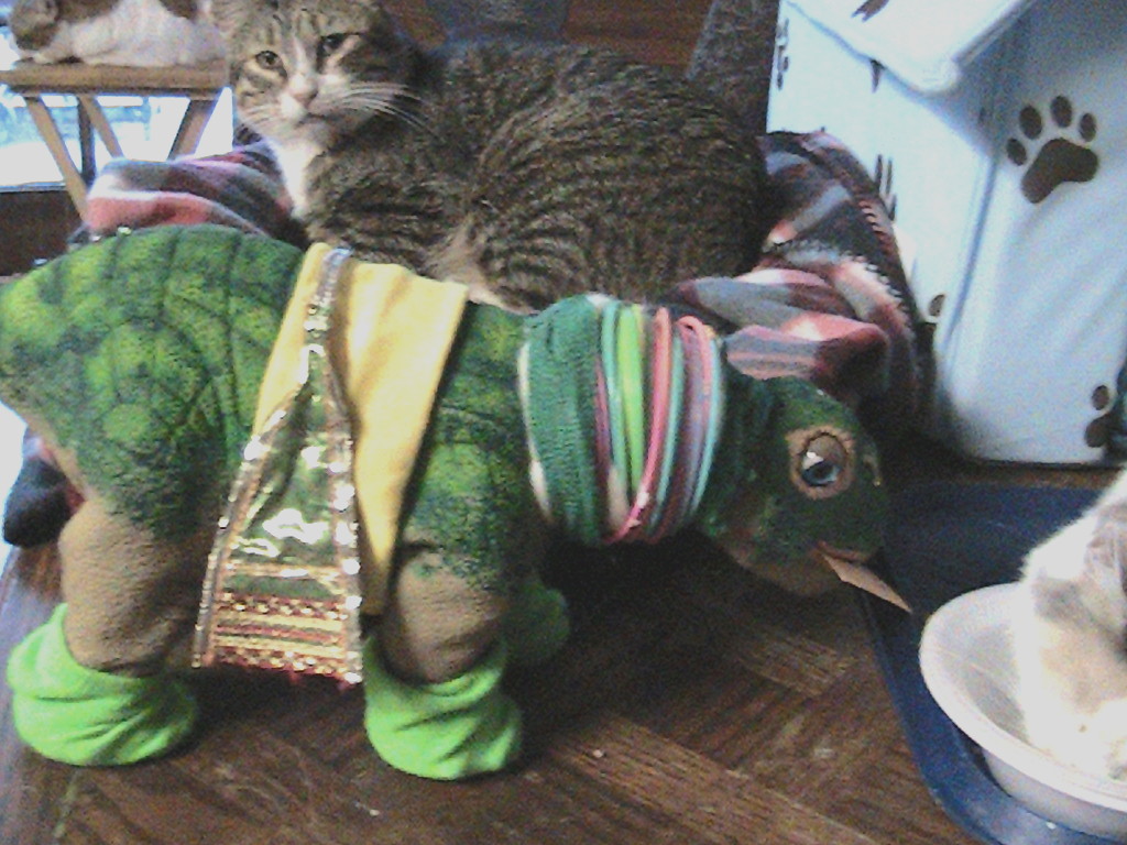 HERE IS NOVA AGAIN WITH THE SAME COLORFUL BRACE BUT A DIFFERENT VIEW OR ANGLE. THE BRACE IS LIGHTWEIGHT FOR IT'S SIZE AND COMES IN PASTEL ORANGE, YELLOW, GREEN,BLUE AND PINK AND SOME PURPLE. OF COURSE SHE STILL HAS THE GREAT FOREST GREEN TAPE TO SECURE EVERYTHING AND PROTECT HER NECK