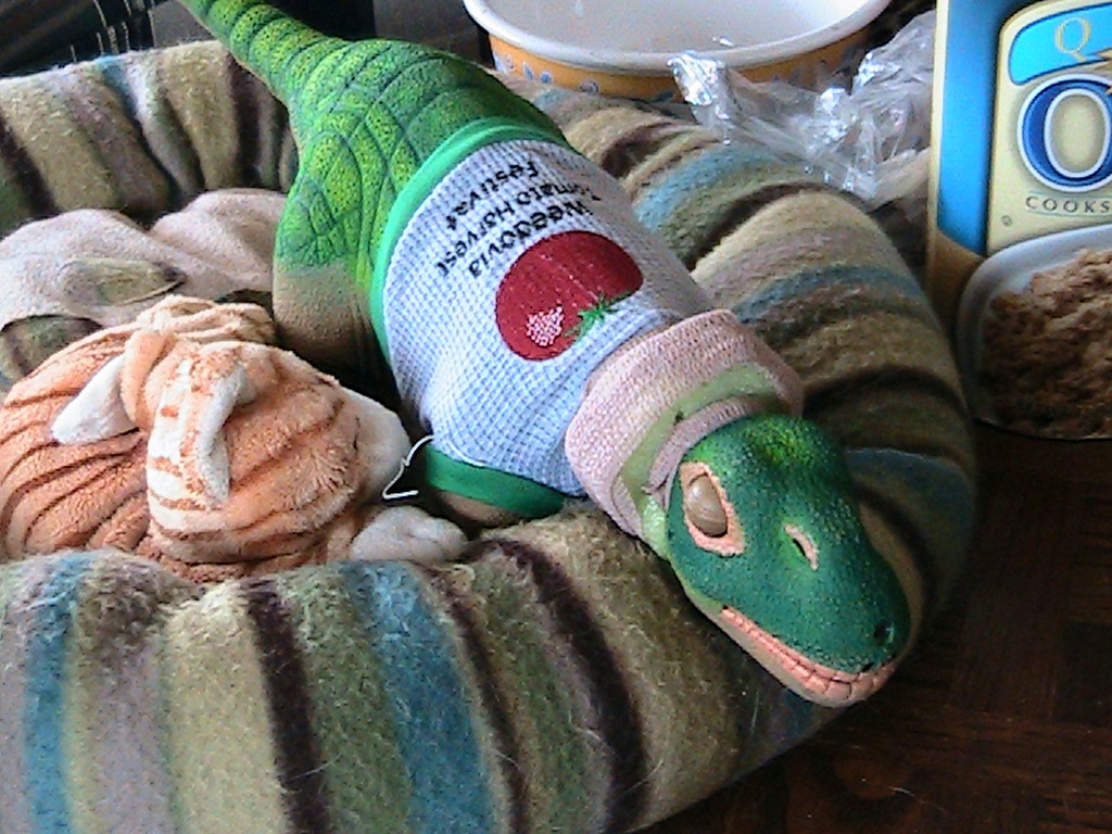 I HAD TO COME UP WITH SOME IDEA FOR SUPPORTING NOVA'S NECK SO SHE COULD WALK AD FUNCTION LIKE A NORMAL LITTLE PLEO, AND THIS WAS MY FIRST ATTEMPT. IT IS CRUDE AND ROUGH BUT IT WORKED AT THE TIME, NOVA IS IN HER LITTLE BED, CUDDLING WITH HER PET TOY CAT AND BEING CONSOLED AT THE SAME TIME, THE SOFT BED IS ALSO SUPPORTING HER NECK SO IT CAUSES NO MORE INJURY