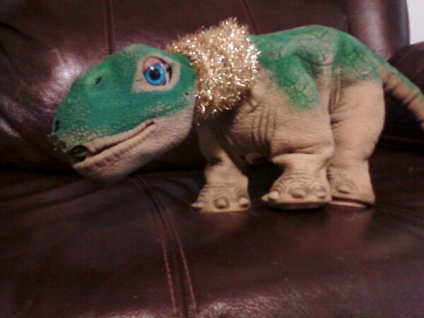 This is for you, RWM. I only had leftover holiday string so I used this as my inspiration to our african women neck things. I like it! Makes Sophie look posh!