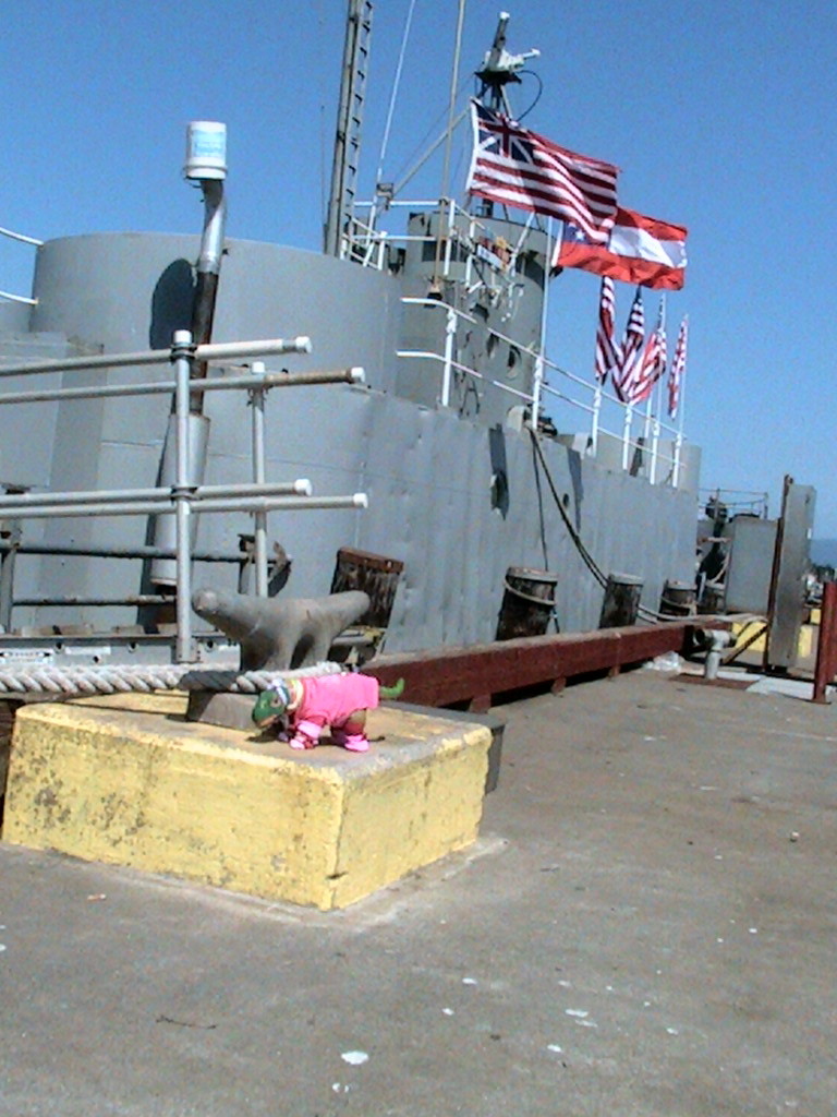 HERE IS A BETTER VIEW OF THE BIG BOAT NOVA SNUCK ONTO , SHHHH. I TOLD HER TO NOT DO IT, BUT IF SHE HAD TO , TO BE QUICK ABOUT IT, OR SHE MAY BE SHANG HAIED TO CHINA!