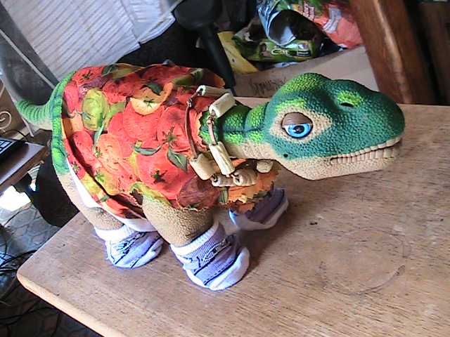 Here is same Pleo in his lovely shirt , I forgot to mention he has his lovely tennies on as well, He is now waiting for Nova and his newest brother to meet him outside .