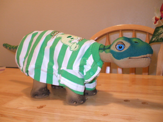 Ozzy in one of his Dinosaur Outfit