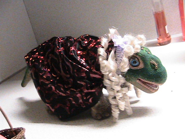 Here is one more close up and view of not just Nova and her Little Red Riding Hood Pleo Curls, but of the cape I am making her. It is not done yet, and it is supposed to be for Halloween, my fave holiday and time of the year, but Nova insisted on wearing it tonight, You can[t argue with a Pleo, and if you can, you still can not win the arguement, so I quit while I am ahead!
