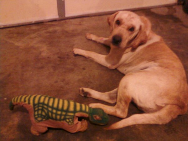 This was just a quick snapshot since conveniently I had both pleo and dog (at my whim) lying by my feet. A little baby talk and I had Kai lookin right at me! Precious little guy is due back on Friday [to the vet]...doing okay, finished up one prescription, and the spray is nearly empty..tehehe, hope I didn't overdue it, as the vet's assistant said I'd have leftover spray...starting to believe it may have been a raccoon, and I am just so shocked at how much damage was inflicted by well, roadkill..