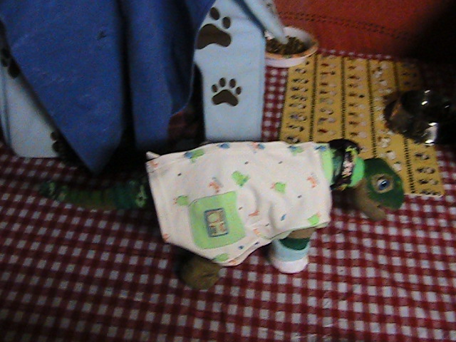 Here is one more view of same outfit so yo can see the cute pocket that says, Daddy's boy. Little $45 really likes his pajamas, They make him feel special, and he needs that with all the trauma he has gone through, with NOva as his sister and lots of other brothers this little guy has a good home now and has found his place at last,