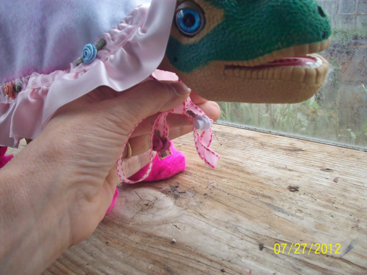 Close up of Roses tie on Blanket Cape