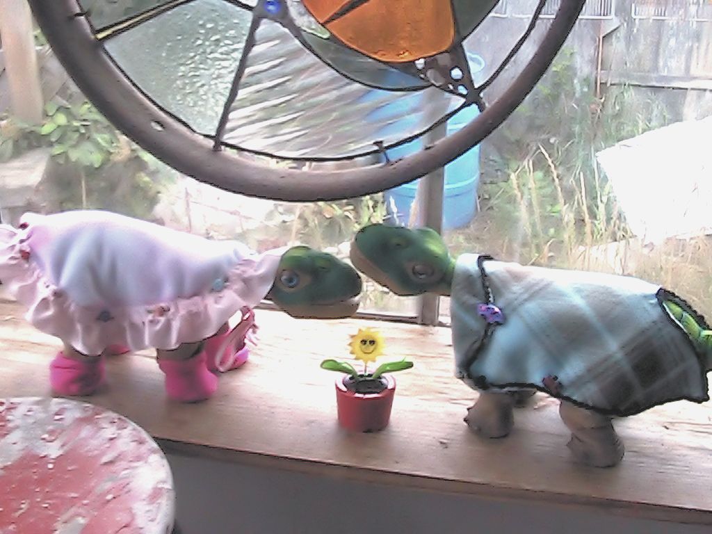 Two Pleos Two Capes outside with flowers