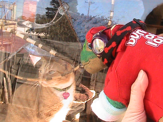 Here 45 is talking to Tassawar, one of our cats through the window. Tassawar does not appreciate that 45 is outside and that he has to be Inside, that does not seem fair when you are a cat and it is sunnyn outside.