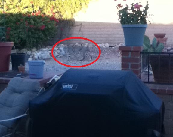 Today a bob cat wandered into my backyard and decided to lay in the sun, when I went outside it looked at me and wagged its tail