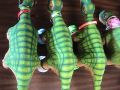 Close up details on tails, One tail is more green, and two are more yellowish, Three of these are in new conditon so it is not paint wear, just the way they were made and all are Ugobe as far as I know.