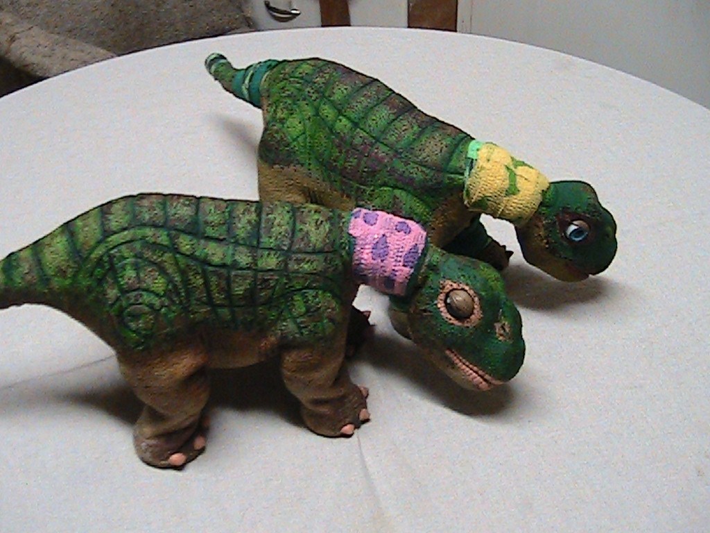 Here we have NOva, in the pink neck bandage and Little 45 in the Yellow bandage after Makeover.
