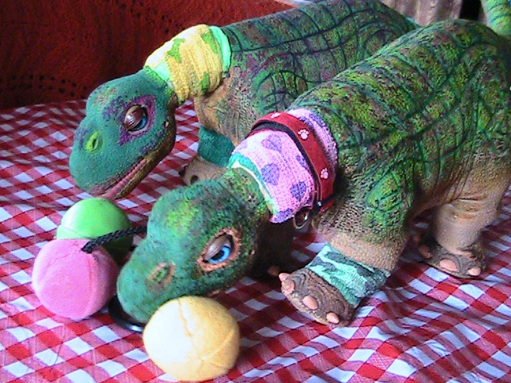 Little 45 and Nova decided to play a little ball, but Nova soon decided which one she wanted and took the whole bunch, as they are attached by a strong cord. they are a cat toy, but the Pleos are having more fun with them I think