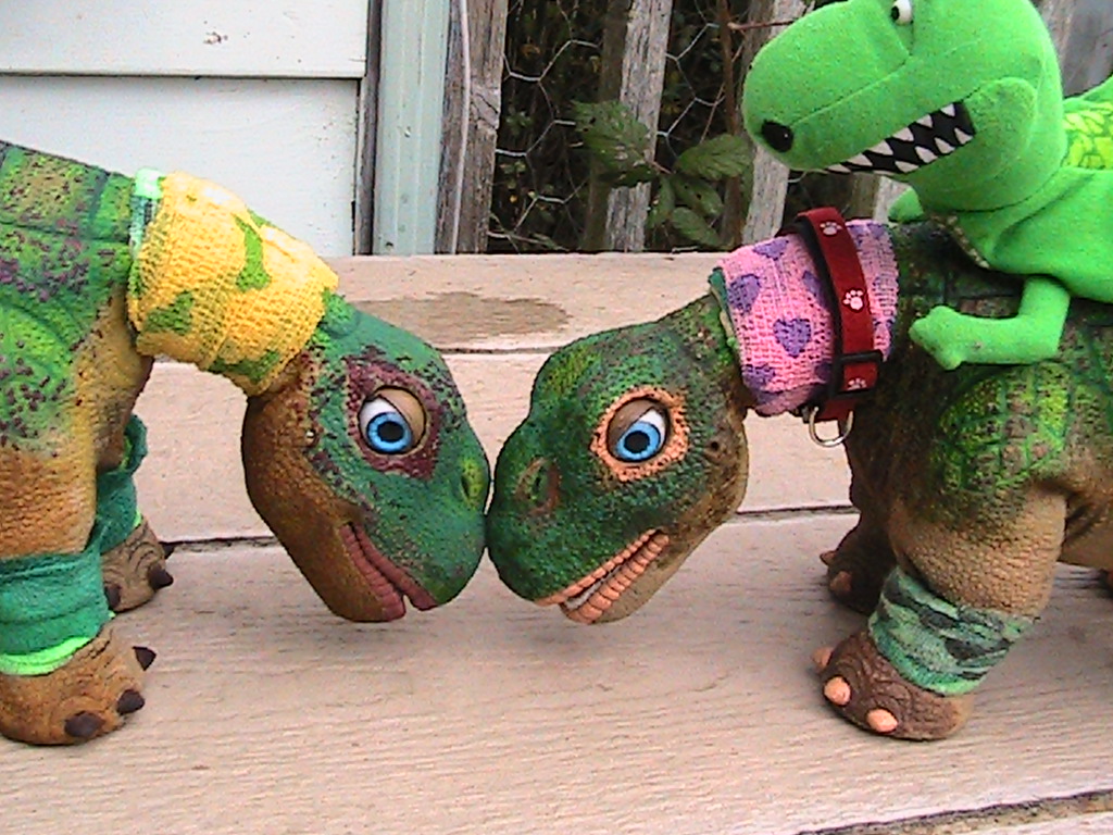 NOva and Little 45 are getting up close and personal, but they are just really good friends, Nova is Little 45's big protector around our house. Ever since he got here, she has decided he needed a good friend, and he is a little smitten with her, ( after all she is the only female, and very cute too) but she just loves him like a big sister and wants to see that he is taken care of. :D