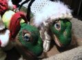 Unusual tree topper  The Pleos started a new tradition. Instead of typical fare such as Angels or bright Stars, they decided to place a Black Crow or Raven at the top of the tree, then to top it off, they put a Apple ornament in his mouth. they do have a sense of humor.