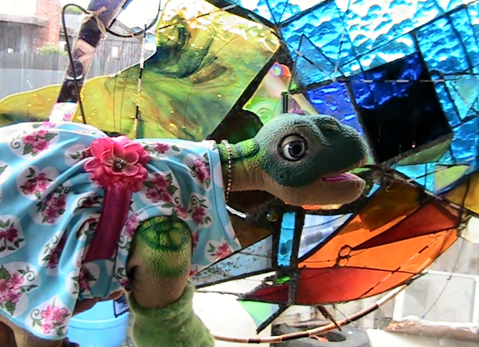 Baby Pleo Rb looking out the window into the backyard, wishing she could go somewhere and she did shortly after this and met lots of people who just fell in love with her.