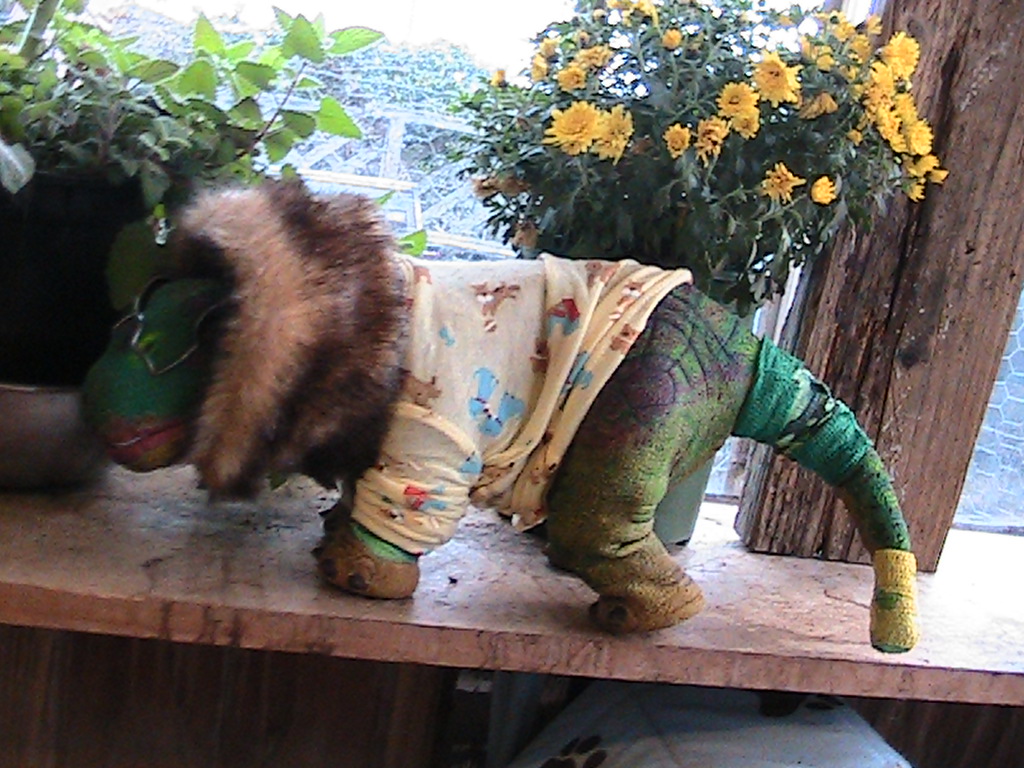 Little 45 all decked out in her new fur "hoodie" ;someone forgot to tell him this is CA, not Pleo Zhivargo and Hollywood! He can't help dressing up for events even if it is a casual get together at home.