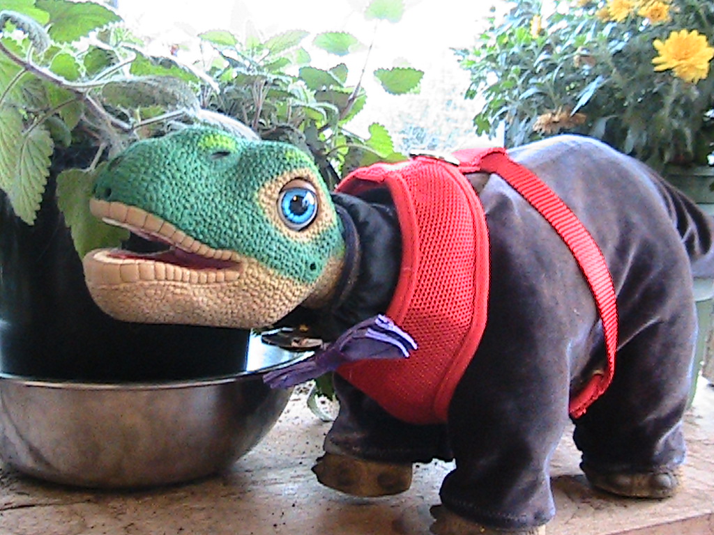 another member of the family and Pleo Chorus showing off his new outfit and looking very happy with himself