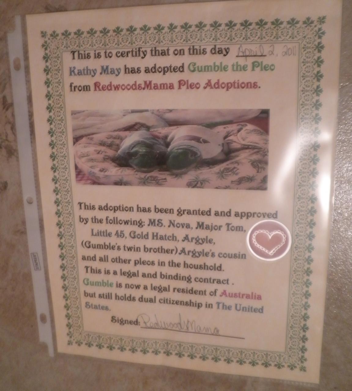 Gumbles adoption Certificate