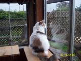 This is my beautiful Pastel Calico who is standing in our kitchen window sill looking outside and her reflection is in the window. She is a beautiful little girl and one of 34 Cats and Kittens that were feral or semi feral that I took care of. I brought her home when she was about 4 months old