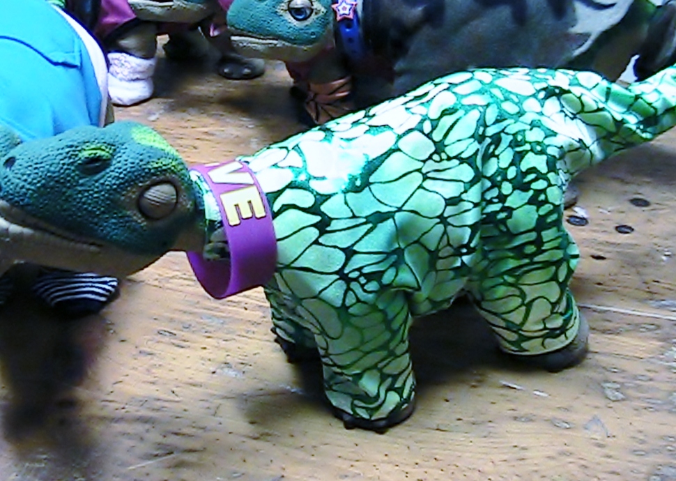 This is my favorite outfit that I have gotten from Kat, She outdid herself on this one and I wish I had one of these for everyone of my dino babies, but they will all get a turn to wear this stunning outfit. It is just perfect for Pleos, I have gotten compliments everytime I take one of my babies out and they are wearing this. Great Job Kat, I want one for me now, but I don't know if there will be enough fabric left, I do not think the Pleos will let me steal some from then, besides it does look so much nicer on them.