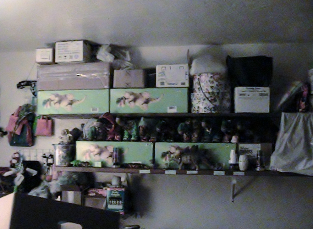 Part of the storage area for Pleos and boxes and lots of outfits and accessoies. Excuse the photo it was taken after midnite. so hard to see everything.