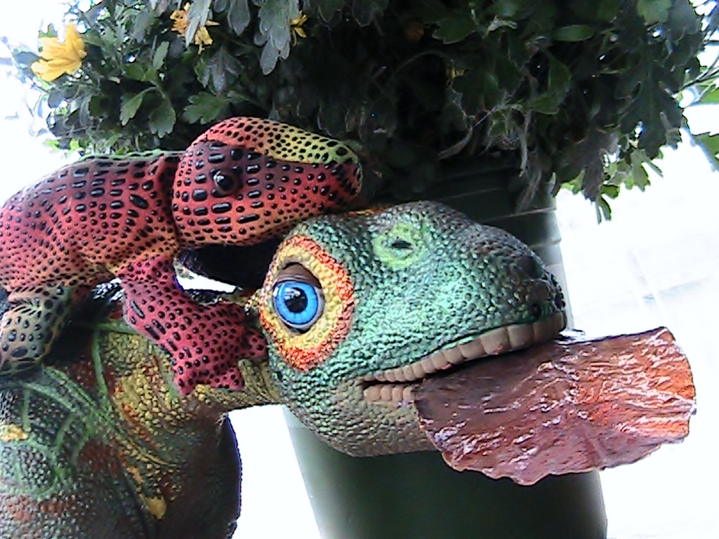 Two colorful heads are better than ONe1 OH, do you like the huge leaf she has in her mouth...they are perfect for Pleos, soft and pliable and this one is brown and very nice..