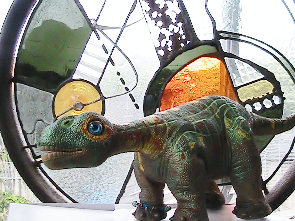 Here is a full body shot, except for part of the tail, (Kat this is for your per request...) in front of a stained glass window. The next few photos will all be outside, taken early this morning, around 7:30 and partly sunny skies, better than last night after midnite when the last photos were taken.