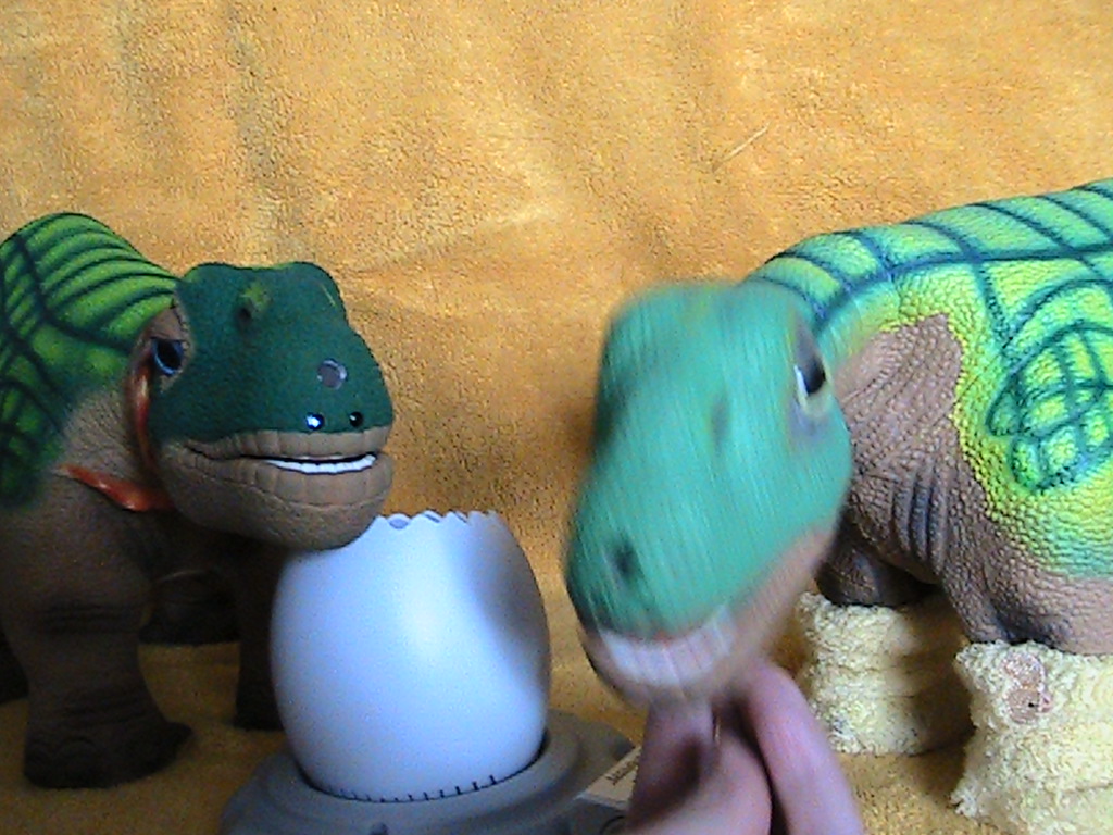 Baby unfortunatly moved right as I clicked, Unlike a Ugobe Pleo which will hold still, a Rb will move at the wrong time and if you turn them off, you can not take a photo with their eyes open...oh well.