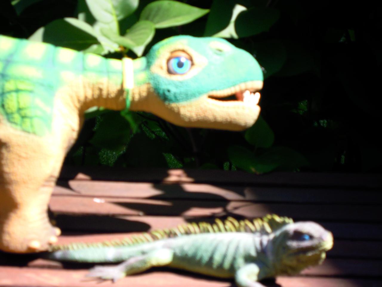 J.C. Takes advantage of his enormous foot on a poor little iguana's tail.