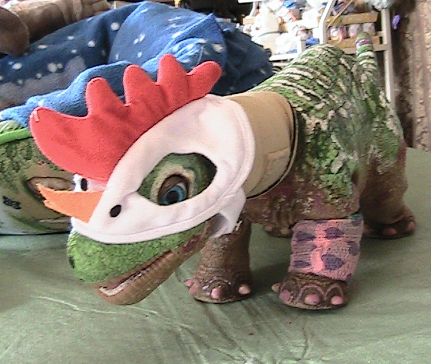 I think the neck brace will give the identiy of this Pleo er, chicken away. LOL