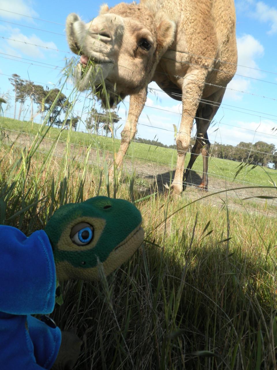 having a snack with Kiara the camel