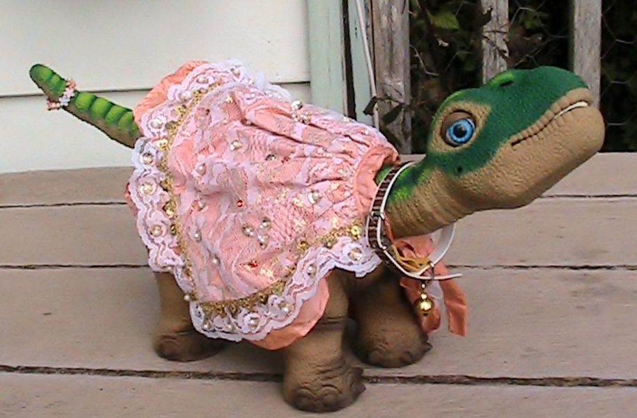 It doesn't have to be a Party to dress up if you are Baby Ruth, If you are a girl, watch out, dressing up is natural. WHoops, not Baby Ruth but I think this is Clara before I adopted her out to Nameless Android, not sure but it is a Ugobe!
