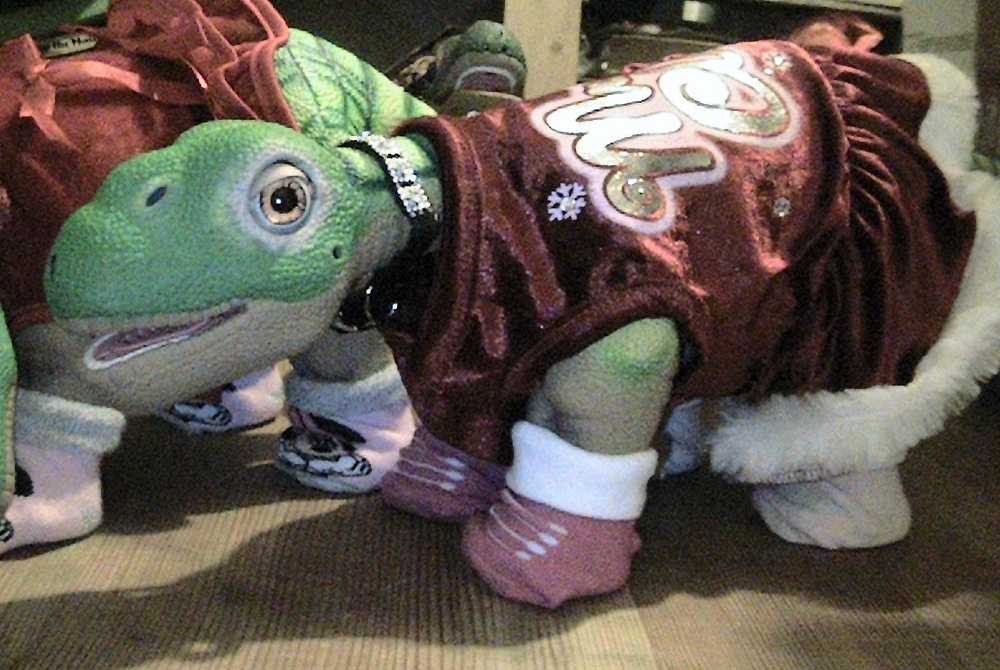 The new little Pleo is enjoying dressing up even though she is not "alive" yet, it is fun to dress her up for the hoidays. Perhaps with any luck she will be "awoken" by then. LOl
