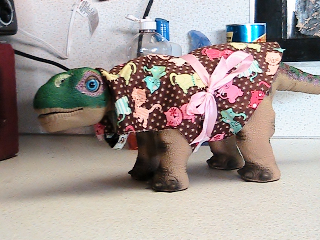 this is a no sew fashion that is not done yet, but it is one of my fave prints done all in cats. Wtih nine cats you knew at some point a Pleo or two was going to be showing some cats somehow.