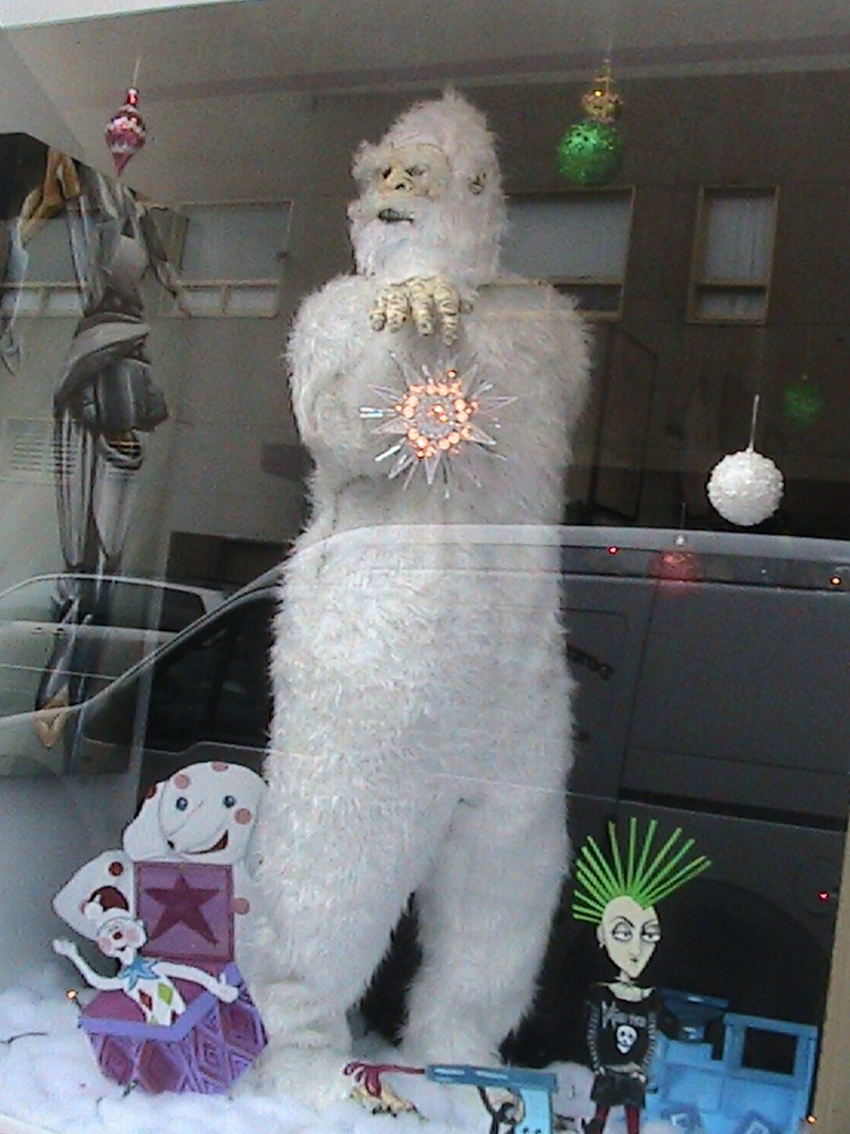 Here is a full body shot of Yeti and he is holding something....seems like Yeti are attracted to stars and shiny objects which abound at Christmas time...