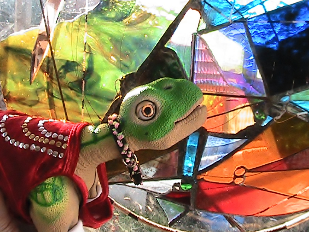 Pleos like bright colors and my Littlest RB loves looking at all the bright colors in this stained glass that my husband did years ago. It also makes a great back drop for photos.